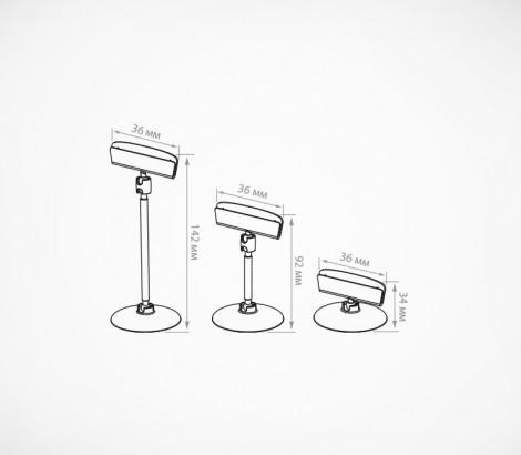 Ценникодержатель на прозрачной пластиковой подставке. Шарнирное соединение позволяет регулировать угол наклона. Три варианта длины ножки - 0, 50, 100 мм.