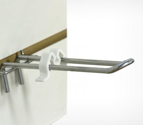 Ограничитель товара предназначен для фиксации товара  на крючках  при транспортировке дисплея, а также для ограничения рабочей длины крючка. Подходит для двойных и одинарных крючков. Стандартный  цвет - белый.