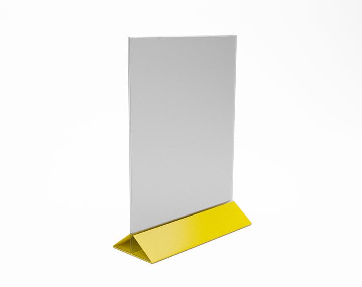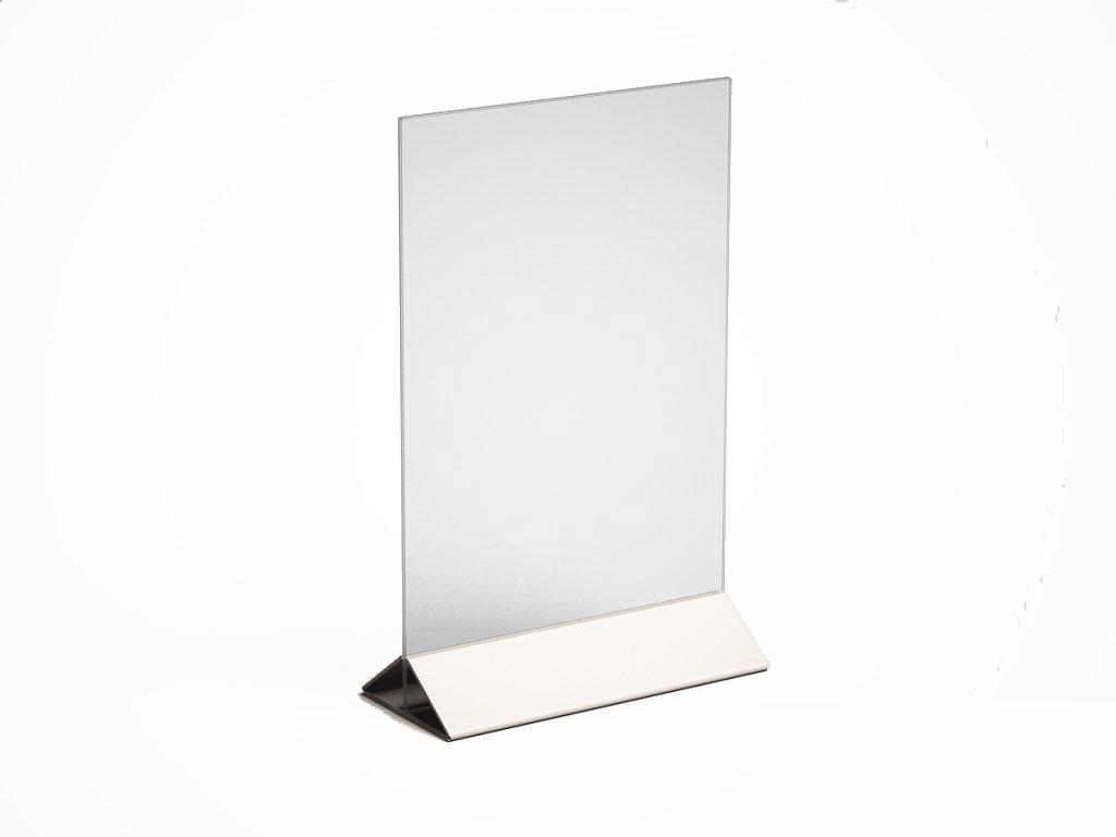 МЕНЮХОЛДЕР ФОРМАТА А-4, С НИЖНЕЙ ЧАСТЬЮ РАЗЛИЧНЫХ ЦВЕТОВ, КЛАСИЧЕСКОГО ВИДА. СОСТОИТ ИЗ ДВУХ ЧАСТЕЙ, ПРОЗРАЧНОГО Т-ОБРАЗНОГО ПЛАНШЕТА И НИЖНЕГО ДЕРЖАТЕЛЯ, ТРЕУГОЛЬНОЙ ФОРМЫ. ПОДХОДЯЩИЕ ИЗДЕЛИЕ, ПРИ НЕОБХОДИМОСТИ ПО ОСОБЕННОМУ ВЫДЕЛИТЬ ИНФОРМАЦИЮ.