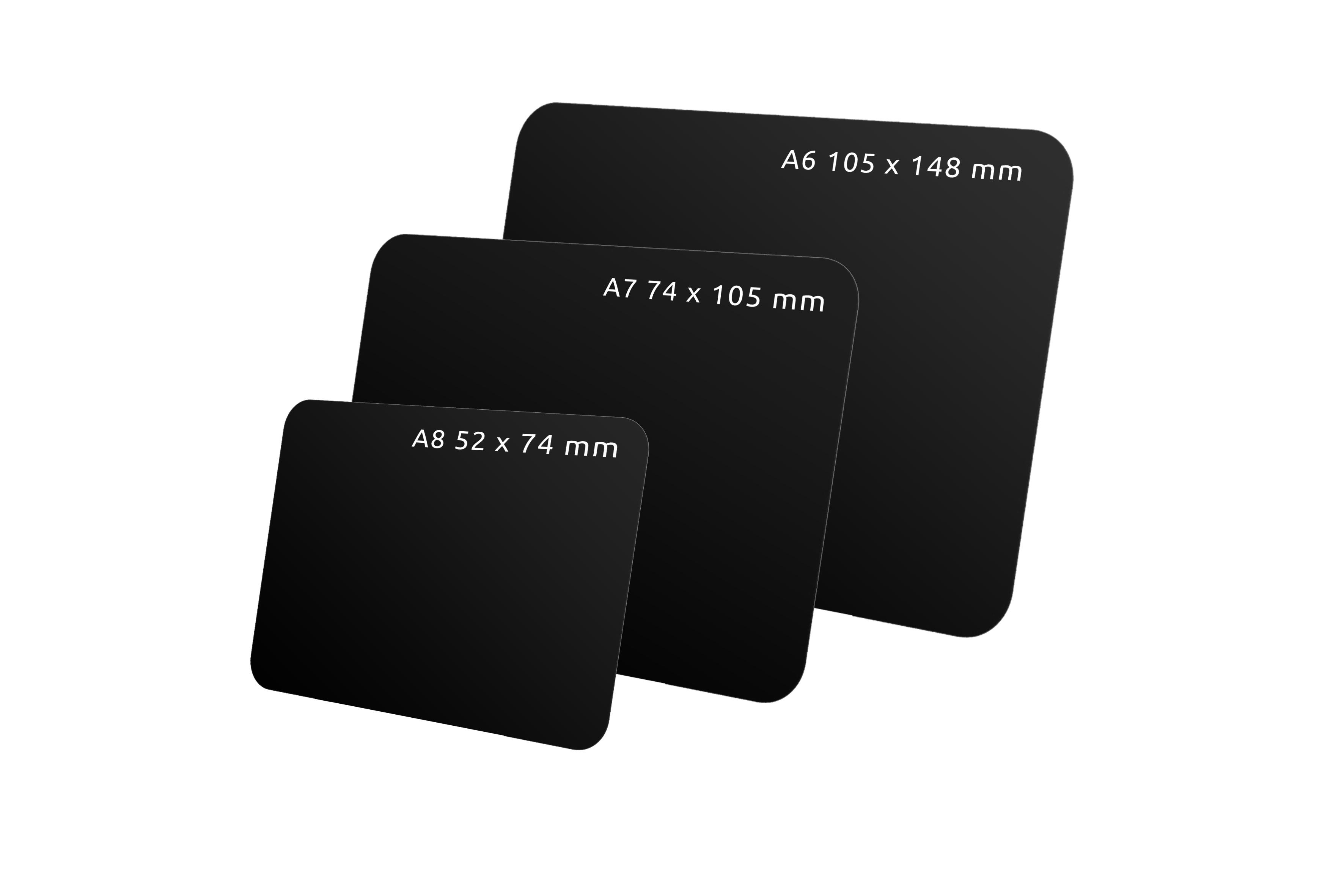 Вставка в рамки из плотного чёрного пластика для нанесения надписей белым маркером на меловой основе. Рекомендуется использовать со специальными меловыми маркерами, представленными в нашем каталоге. Толщина табличек - 0,5 мм. Углы таблички закруглены.