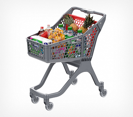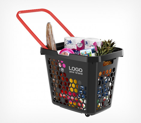 Покупательская корзина DISCO сочетает в себе функции переносной корзины и корзины-тележки. Удлиненная ручка и ручка для переноса фиксируются в удобном для покупателя положении. Поворотные колесики, не оставляющие следов на полу, обеспечивают маневренность корзины в торговом зале. Корзина по бокам имеет поля для брендирования размером 196х105 мм. Объем: 28 литров