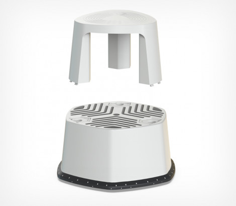 Передвижной табурет-стремянка STEPP PRO позволяет без труда добираться до полок, расположенных выше человеческого роста. Особенности: оснащён колёсиками, с помощью которых табурет легко передвигать, даже если руки заняты имеет резиновую окантовку и вставки, что предотвращает скольжение табурета на полу и скольжение ног на табурете подходит для использования в магазинах, аптеках, на складах, в офисах, а также дома или в гараже. Характеристики: высота: 440 мм максимальная нагрузка: 150 кг вес: 2,8 кг материал: пластик Табурет поставляется в разобранном виде.