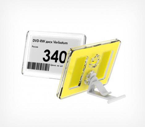Универсальная рамка-ценникодержатель с 2 гнездами для крепления рамки на разных уровнях относительно полки. Прорезь для вставки по широкой стороне рамки. Размер вставки - 74×53 мм.