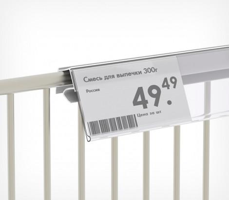 Универсальный задний монтажный профиль для ценникодержателей типа-DBR . Уникальная конструкция позволяет крепить самоклеящиеся ценикодержатели к корзинам из металлических прутьев и к стеклянным полкам.