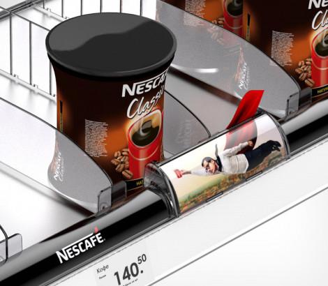Используется передний профиль с ценникодержателем. Высота рекламной вставки - 30 мм. Имеет Т-профиль для крепления разделителей и толкателей. Крепится на полку на двухсторонний скотч.