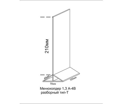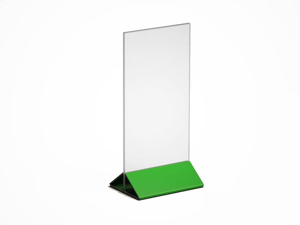 МЕНЮХОЛДЕР ФОРМАТА 1/3 А-4, С НИЖНЕЙ ЧАСТЬЮ РАЗЛИЧНЫХ ЦВЕТОВ, КЛАСИЧЕСКОГО ВИДА. СОСТОИТ ИЗ ДВУХ ЧАСТЕЙ, ПРОЗРАЧНОГО Т-ОБРАЗНОГО ПЛАНШЕТА И НИЖНЕГО ДЕРЖАТЕЛЯ, ТРЕУГОЛЬНОЙ ФОРМЫ. ВОЗМОЖНО НАНЕСЕНИЕ ЛОГОТИПА.