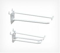 Двойные и одинарные крючки для крепления на картон. Эксклюзивное решение, для получения дополнительной вертикальной площади, для реализации товаров. Легко устанавливаются на изделия из картона при помощи интегрированных крючков с гарпунным наконечником. Усиленный материал крючков и ребра жесткости позволяют использовать крючок, даже для тяжелых товаров.