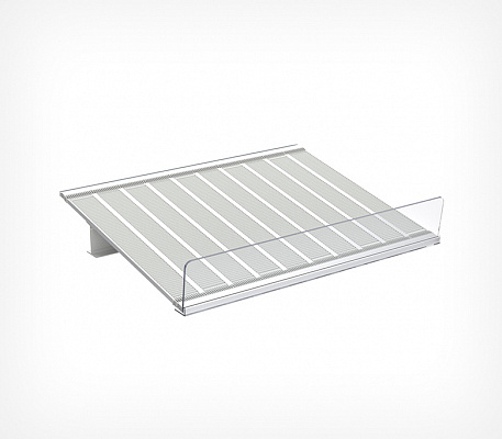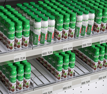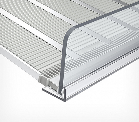 Кристально прозрачный ограничитель выгодно презентует продукт и предотвращает его падение. Может быть использован для дополнительного брендирования при нанесении графики.