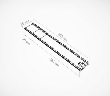 Профиль BACKLINE ребристый для задней опоры 385-485 ширина 55 мм — Профиль ребристый обламывающийся для пластиковой задней опоры 385–485 BACKLINE. Материал: ударопрочный пластик. Крепится: на Т- или L-профиль в передней части. По всей длине: ребристые выступы для удерживания плоских упаковок товара.