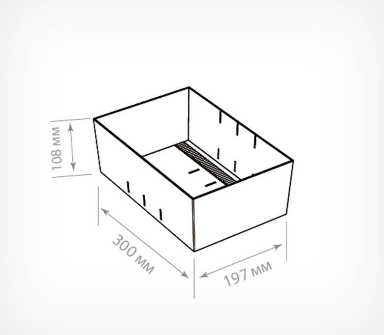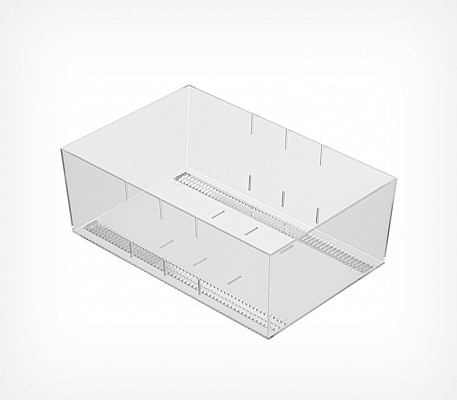 Рифленое дно предотвращает скольжение товара, а прозрачный пластик отлично презентует товар со всех сторон. На лицевой панели могут крепиться самоклеящиеся ценникодержатели.